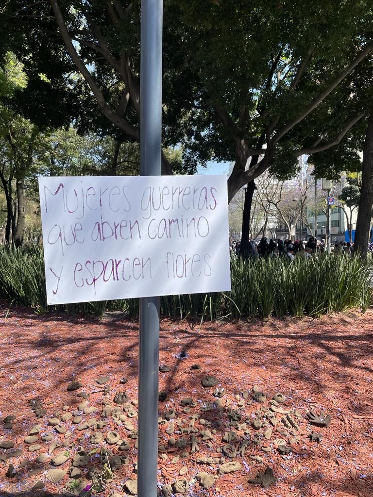 Espacio de encuentro en la Fuente Rítmica en la Alameda Central, en donde las mujeres que asistieron a la marcha compartieron sus deseos al realizar esculturas de barro (sus “pedimentos”), que después fueron depositadas en los jardines de la Alameda.